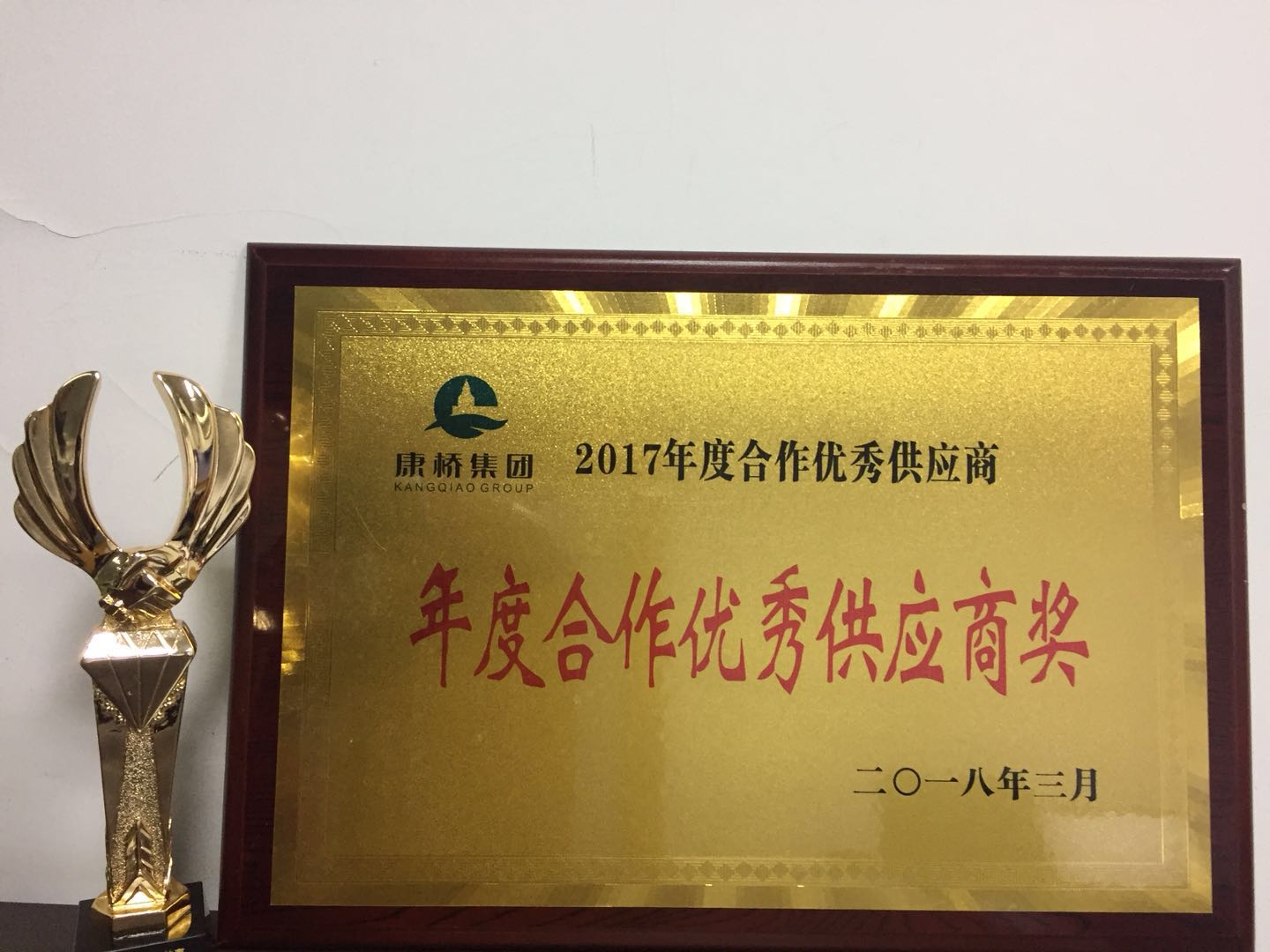 3月17日,在康桥集团的2018年盛宴同路人大会上,上海修齐材料科技公司与河南五建、中天建设等优秀供应商企业一起获颁“2017年度合作优秀供应商”称号。